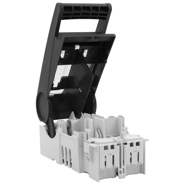開關由底座、蓋子和接觸橋組成,保險絲安裝在蓋子里面,蓋子可以沿著支撐件以扇